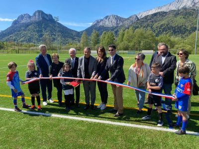 Ravie d'être aux côtés des élus de la CCSLA à l'occasion de l'inauguration de leur magnifique stade intercommunal de Foot-Rugby à DOUSSARD.